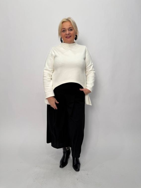 Tunika Safo od włoskiej marki Wendy Trendy to jedna z kilku propozycji tunik w naszym butiku. Jest krótka z przodu, ze sporo wydłużanym tyłem. Tkanina dresowa, dzianinowa. Posiada ona długi rękaw. Safo świetnie sprawdzi się w jesiennych stylizacjach, zestawiona z jeansami czy cygaretkami oraz cięższymi botkami.
