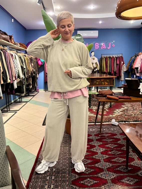Bluza Root to jesienna propozycja w naszym butiku od włoskiej marki Wiya. Posiada okrągły dekolt ze sciągaczem. Root na dole ma ściągacz na wiązanie, które nadają jej charakeru, dzięki temu bluza zmieni nawwet najbardziej prostą stylizację. Bluza jest na długi ręakw .Idealnie sprawdzi się z naszymi spodniami dresowymi.