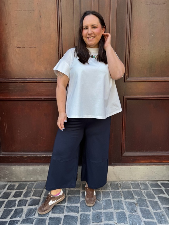 Bluzka RACHELA to propozycja od Wendy Trendy na sezon wiosna lata 2026. Fason basikowej bluzki z pazurkiem. Przede wszystki łądne wykończenie dekoltu cenione przez zwolenniczki szlachetnego minimalizmu. Tył z karczkiem i lekkim przymarczeniem, bluzka zakończona owalnie. Tkanina to punto wenecjalna, lekka wersja popularnego punto milano. Absolutny must have eleganckiej i ceniącej wygodę kobiety