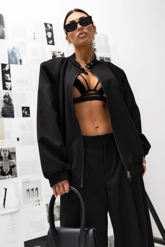Stylowa kurtka bomber to idealne połączenie sportowej wygody i miejskiej elegancji. Luźny krój oversize zapewnia swobodę ruchów i nowoczesny look, a minimalistyczny design sprawia, że model doskonale uzupełni zarówno casualowe, jak i bardziej fashionowe stylizacje. Model zapinany na suwak, wykończony elastycznymi ściągaczami przy rękawach oraz u dołu, które podkreślają sylwetkę i nadają kurtce sportowego charakteru. Delikatnie matowa, gładka tkanina prezentuje się elegancko i świetnie układa się na ciele. Kurtka świetnie sprawdzi się w zestawie ze spodniami z tej samej linii lub jako modny akcent do jeansów, legginsów czy sukienki.