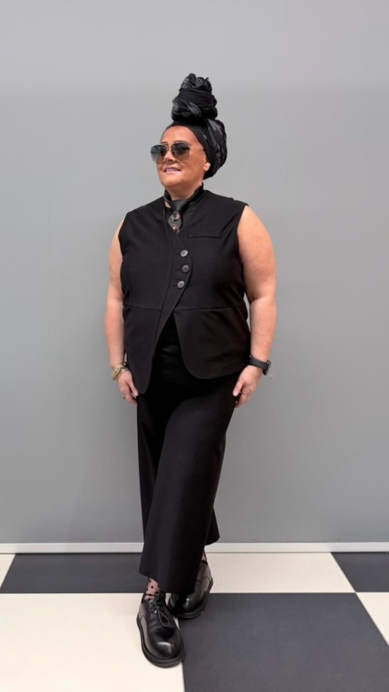 Garnitur AGRA II to najnowsza propozycja od polskiej marki Rivabella. W tym wypadku na garnitur składa się kamizelka i spodnie. Spodnie z luźną nogawką, w talii gumka . Szeroka guma na plecach, kieszenie. Kamizelka o bardzo ciekawym kroju . Zapinana na guziki, asymetryczne linie z przodu. Kieszonki wpuszczane z przodu kamizelki
