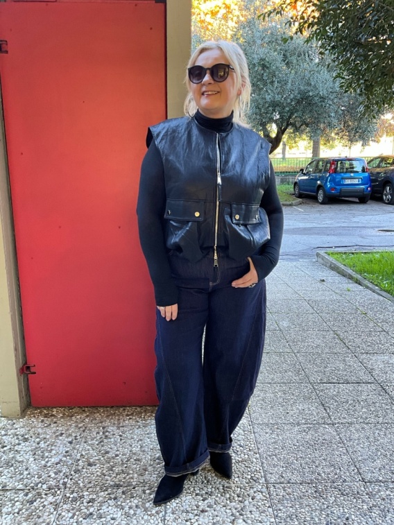 Stylowa czarna kamizelka SAMBA wykonana z mięsistej tkaniny a’la skóra naturalna to doskonałe połączenie elegancji, wygody i modnego charakteru. Prosty fason nadaje jej minimalistyczny wygląd, który świetnie dopasowuje się do różnych stylizacji – zarówno casualowych, jak i bardziej wyrazistych. Model posiada zapięcie na zamek, które podkreśla nowoczesny styl kamizelki, oraz podszewkę, zapewniającą komfort noszenia i trwałość wykonania. Mięsista faktura materiału sprawia, że kamizelka prezentuje się luksusowo, a jednocześnie pozostaje lekka i praktyczna. To uniwersalny element garderoby, który idealnie uzupełni koszulę, sweter lub bluzkę. Czarna kamizelka a’la skóra to must have dla kobiet ceniących klasykę z nutą nowoczesności.