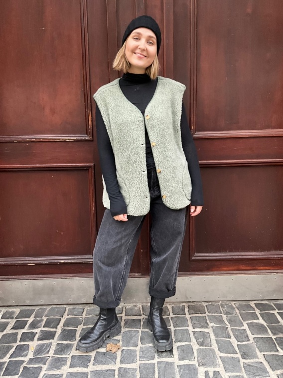 Kamizelka MELA typu kożuszek to idealne połączenie przytulności i modnego designu. Wykonana z miękkiego, puszystego materiału, doskonale otula ciało, zapewniając ciepło i komfort w chłodniejsze dni. Prosty fason sprawia, że kamizelka świetnie układa się na sylwetce i pasuje do wielu stylizacji – zarówno casualowych, jak i bardziej eleganckich. Zapięcie na guziki dodaje jej klasycznego charakteru, a jednocześnie pozwala nosić ją na różne sposoby – rozpiętą lub dopasowaną do figury. Ta miękka, ciepła kamizelka-kożuszek to idealny wybór dla kobiet ceniących wygodę, styl i przytulne wykończenie. Doskonale komponuje się z golfem, swetrem czy koszulą.