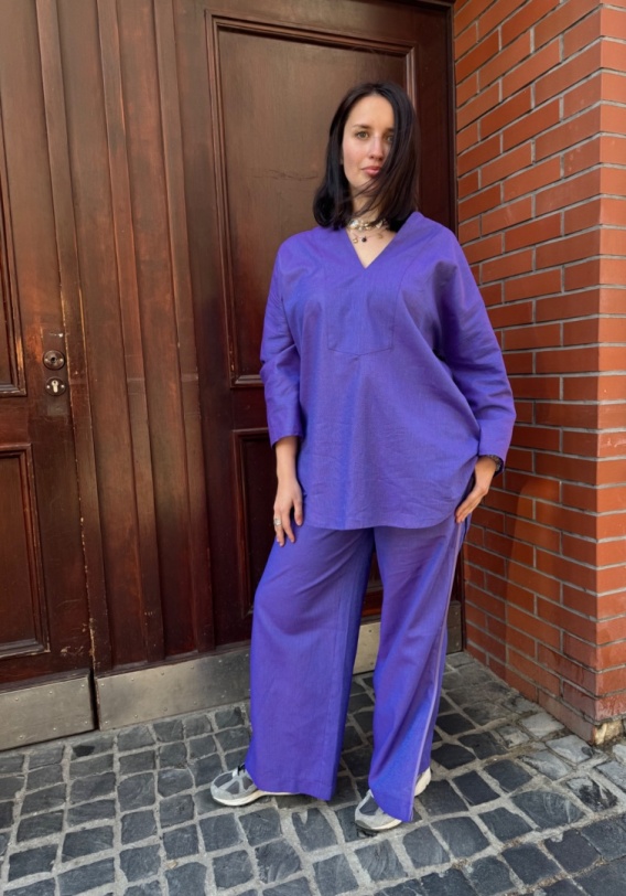 Komplet Dorelli od polskiej marki Rivabella to elegancja propozycja na każdą okazję. Tunika i spodnie łączy kobiecość z nowoczesną formą. Spodnie na elastycznej gumie zapewniają komfort i swobodnę ruchów. Po bokach rozporki i stylowe lamówki . Tunika dekolt V.