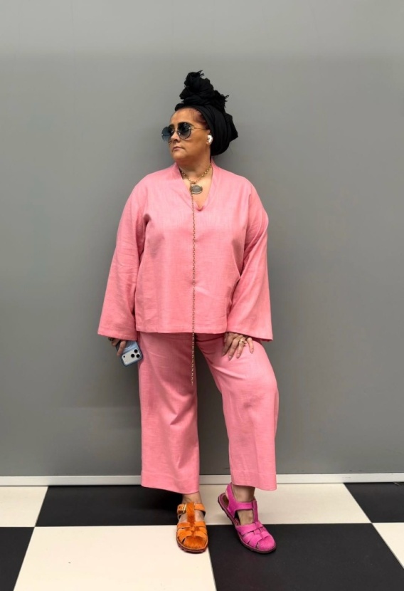 Komplet MIRELLA od polskiej marki Rivabella to elegancja propozycja na każdą okazję. Tunika i spodnie łączy kobiecość z nowoczesną formą. Spodnie na elastycznej gumie zapewniają komfort i swobodnę ruchów. Po bokach rozporki i stylowe lamówki . Tunika dekolt V.