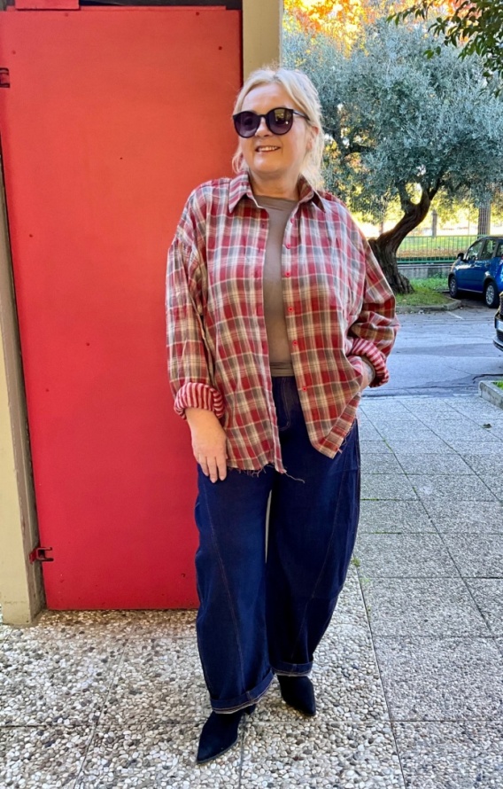 Modna bawełniana koszula w kratę MAGILA o fasonie oversize to idealny wybór dla osób ceniących komfort, swobodę i niebanalny styl. Wykonana z wysokiej jakości bawełny, jest przyjemna w dotyku, przewiewna i doskonale układa się na sylwetce. Brązowo-burgundowa kolorystyka nadaje jej eleganckiego, jesiennego charakteru i sprawia, że świetnie komponuje się z wieloma elementami garderoby. Model posiada klasyczny kołnierz i jest zapinany na guziczki, dzięki czemu można nosić go zarówno jako samodzielną koszulę, jak i jako lekką narzutkę na T-shirt czy top. Ciekawym detalem są rękawy, które po odwinięciu ukazują wzór w paski – subtelny akcent dodający całości wyjątkowego charakteru. Luźny, oversize’owy fason gwarantuje swobodę ruchów i wygodę noszenia. Koszula doskonale sprawdzi się w casualowych stylizacjach – pasuje do jeansów, spodni z wysokim stanem czy legginsów. To uniwersalny element garderoby, który łączy modę, jakość i komfort.