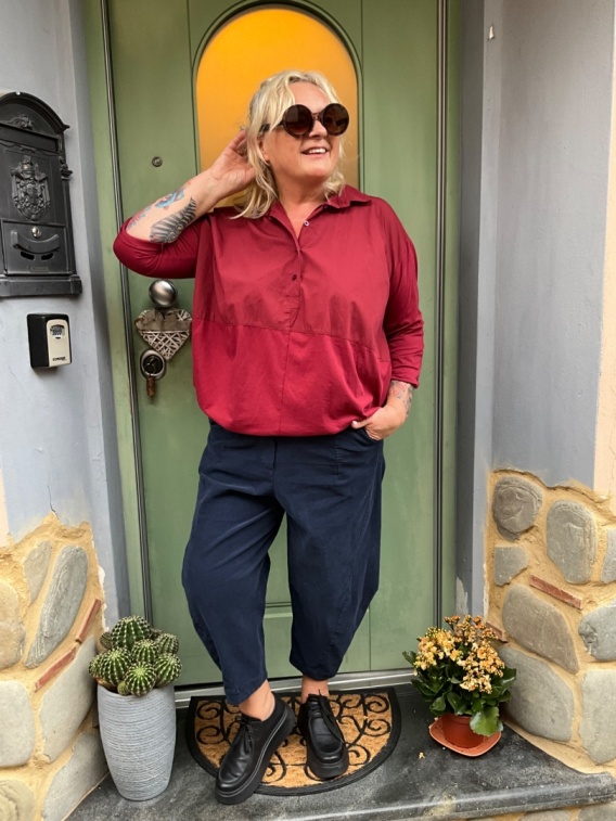 Koszulowa bluzka Magnum to znany model Wendy Trendy. Jest to połączenie bluzki i koszuli. Góra produktu jest z płóciennego, koszulowego materiału. Dół jest bawełniany, dzinonowy. Mahnum ma kołnierzyk, jest u góry zapinana na guziki. Idealnie sprawdzi się w codziennej stylizacji z trampkami i jeansami jak i do pracy z cygaretkami.