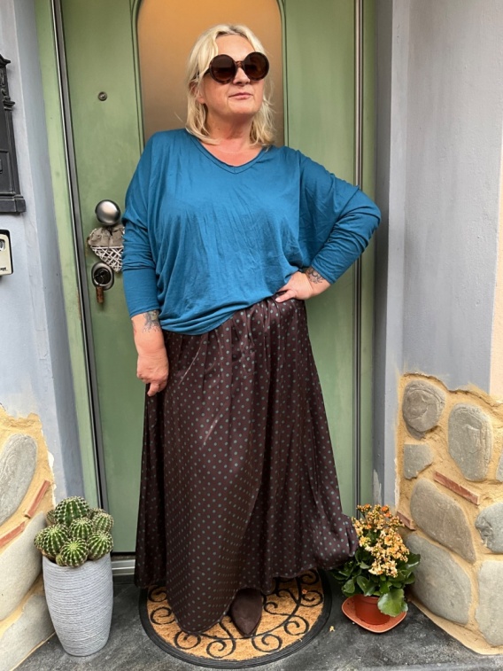 Elegancka spódnica TARA z wiskozowej satyny. Uszyta z wiskozy satynowej z subtelnym połyskiem. Spódnica posiada gumę w pasie, dzięki czemu doskonale dopasowuje się do sylwetki. Spódnica maxi, rozszerzana na dole. Stworzy klasyczny look z bluzką czy koszulą, ale w połączeniu z mięciutkim swetrem również jest niczego sobie. Świetnie będzie wygladała z botkami jak i szpilkami. Stylizację może uzupełnić jesiennym płaszczem czy ramoneska