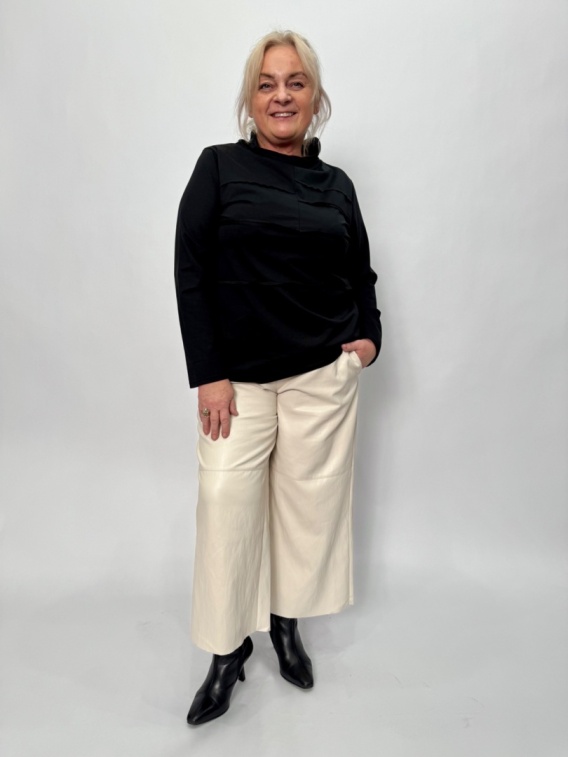 Spodnie MERA polskiej marki Rivabella. Uszyte ze skaju, posiadają kieszenie i gumkę w pasie, dzięki której dopasują się do niemal każdej sylwetki. W naszym butiku dostępne są dwa rozmiary. Spodnie MERA tworzą świetną stylizację z klasycznym basicowym białym t-shirtem i sportowym obuwiem, ale też z butami na obcasie. W połączeniu z koszulą Aristo stworzy niezwykle elegancki, nowoczesny komplet.