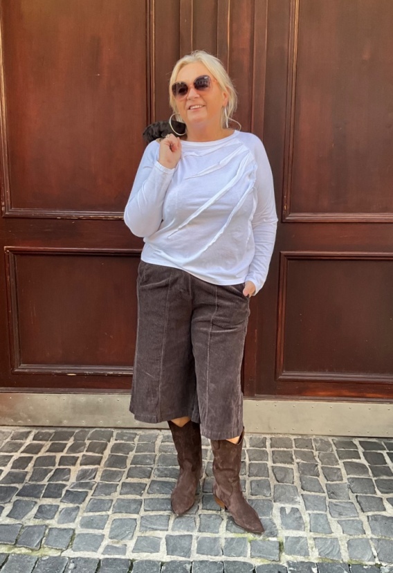 Bermudy Dalton to jesienna propozycja w naszym butiku włoskiej Wiya. Dalton są dostępne w trzech wersjach kolorystycznych i dwóch rozmiarach. Wykonane z miękkiego, przyjemnego w dotyku sztruksu to propozycja, która łączy wygodę z ponadczasowym stylem. Model zapinany na zamek i guzik posiada elastyczną gumę w talii, dzięki czemu idealnie dopasowuje się do sylwetki, zapewniając komfort noszenia. Praktyczne kieszenie oraz pionowe przeszycia na nogawkach optycznie wydłużają nogi i dodają całości eleganckiego charakteru. Bermudy mają rozciągliwy materiał, który nie krępuje ruchów i doskonale sprawdza się na co dzień. To idealny wybór zarówno do casualowych stylizacji z t-shirtem, jak i bardziej dopracowanych zestawów z koszulą czy marynarką.