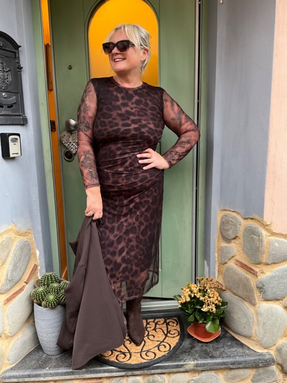 Sukienka DESIRE z długim rękawem wykonana z delikatnej tkaniny siateczkowej to połączenie elegancji i nowoczesnego stylu. Model posiada podszewkę, która zapewnia komfort noszenia, a modny wzór panterki nadaje całości wyrazistego charakteru. Świetnie wygląda również założona pod sweter w bardziej codziennych i wygodnych stylizacjach. Idealna propozycja do wieczorowych zestawień.