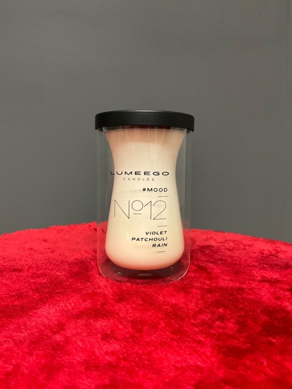 Sojowa świeca zapachowa marki LUMEEGO LUMEEGO Nastrój No12 jest purpurowy jak deszcz, w którym słychać melodię i ten głos. Pachnie fioletowymi fiołkami i wilgotną paczulą, rosnącymi tak blisko siebie.