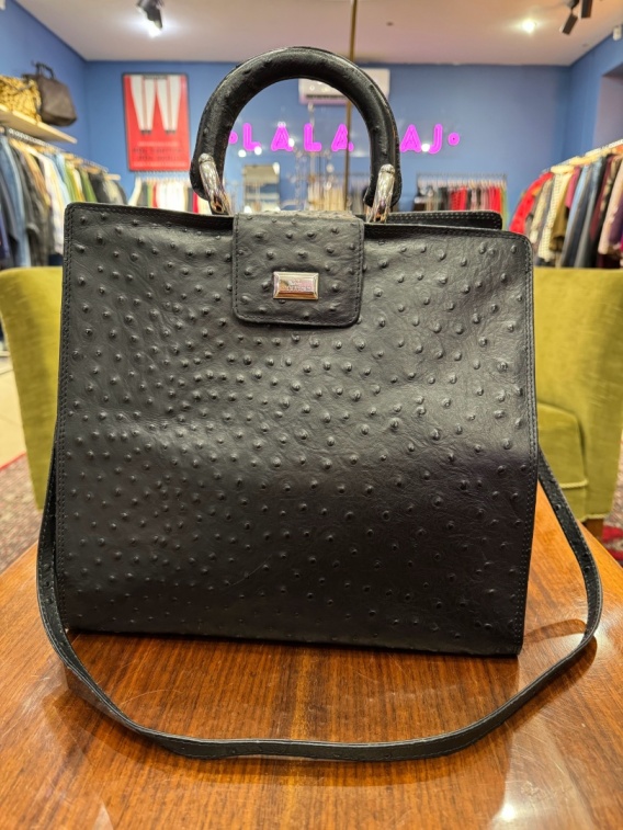 Torebka VINTAGE włoskiej marki GIA MATTIOLO. Marka i torebka charakteryzują się materiałami premium W tym wypadku skóra naturalna . Torebka z podszewką , w środku kieszonka z zamkiem. Torebka do ręki, dodatkowy długi pasek . Torebka jest skrupulatnie wykonana z dbałością o szczegóły , co podkreśla wysoką jakość . Ponadczasowy desing. Skóra strusia z fakturą.